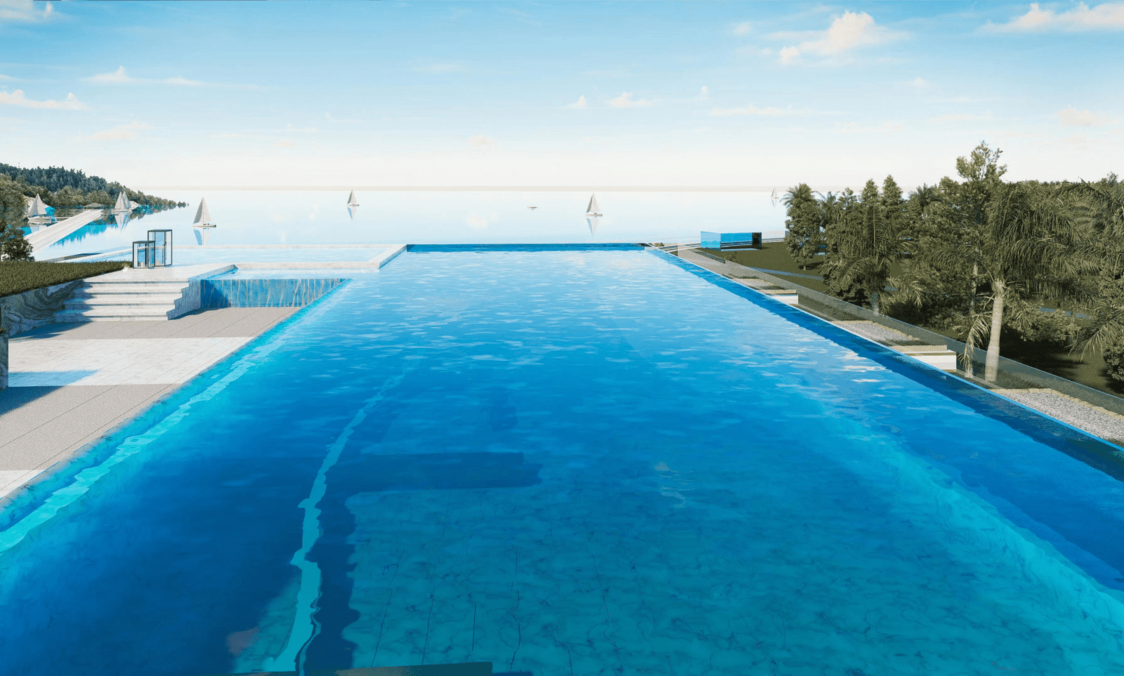 sea, mountain, pool, garden