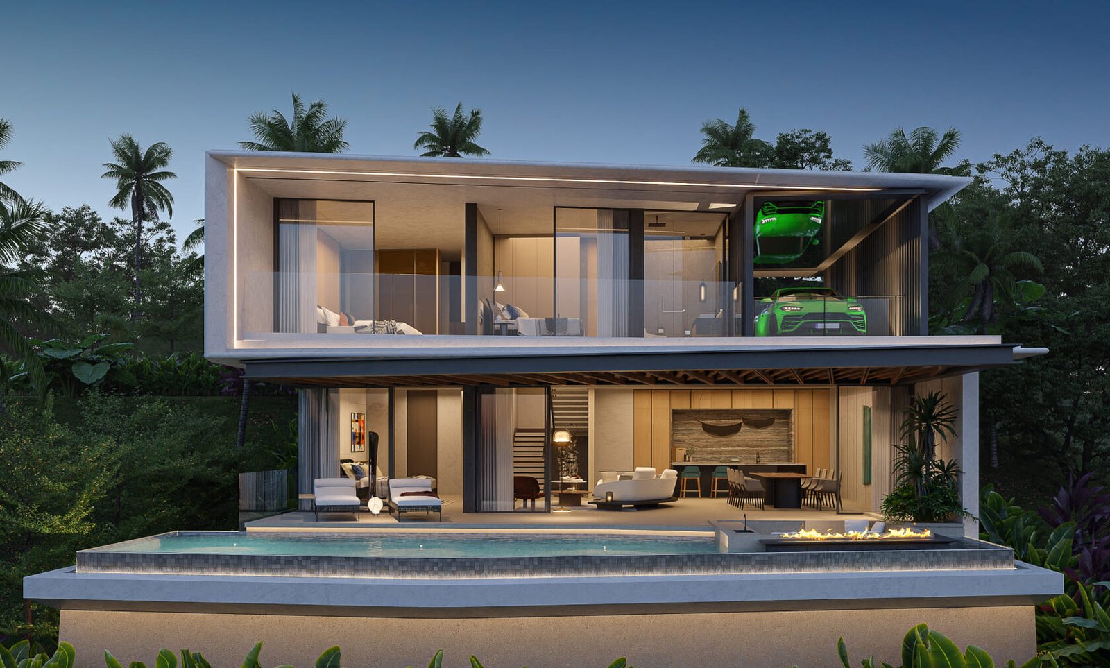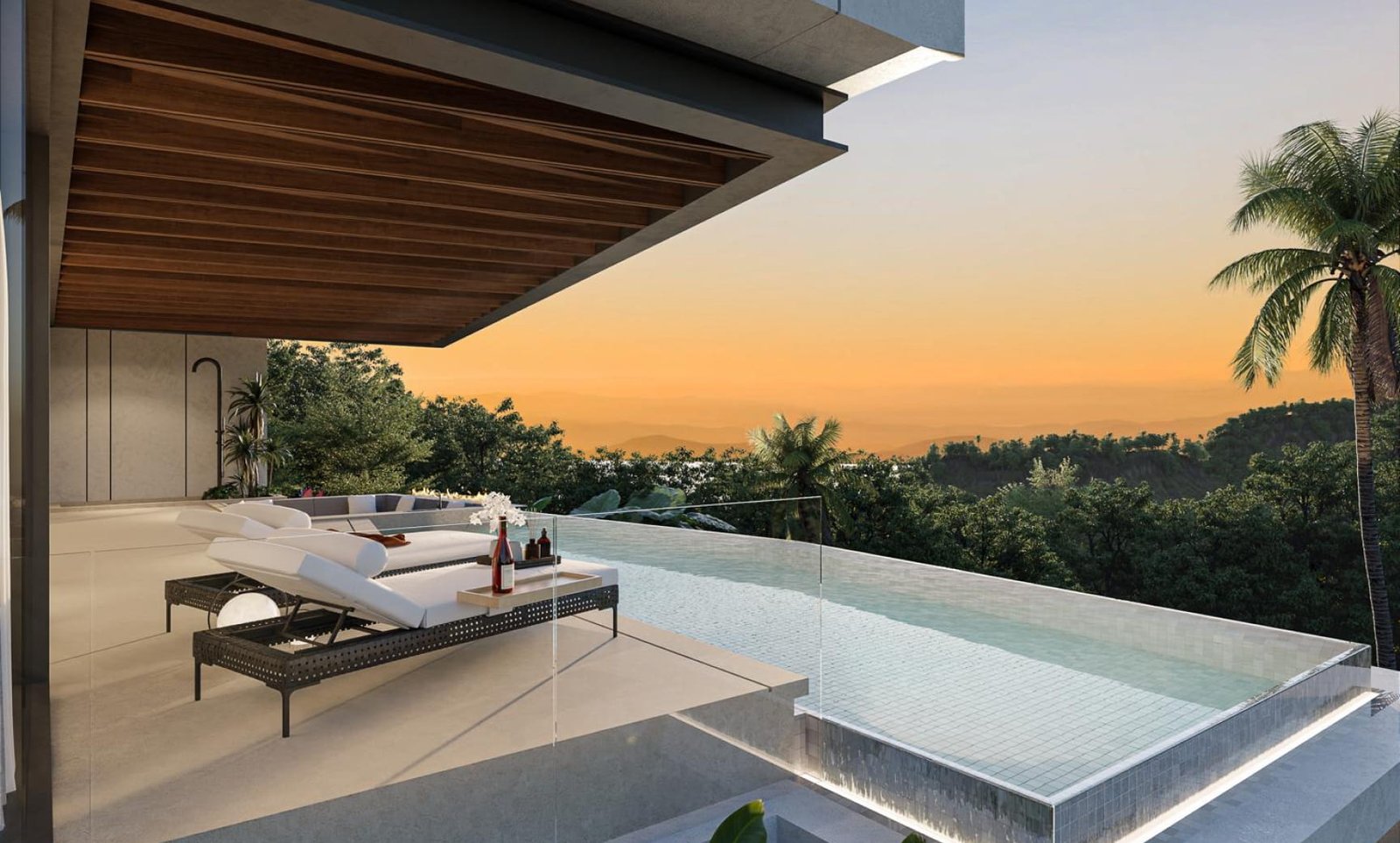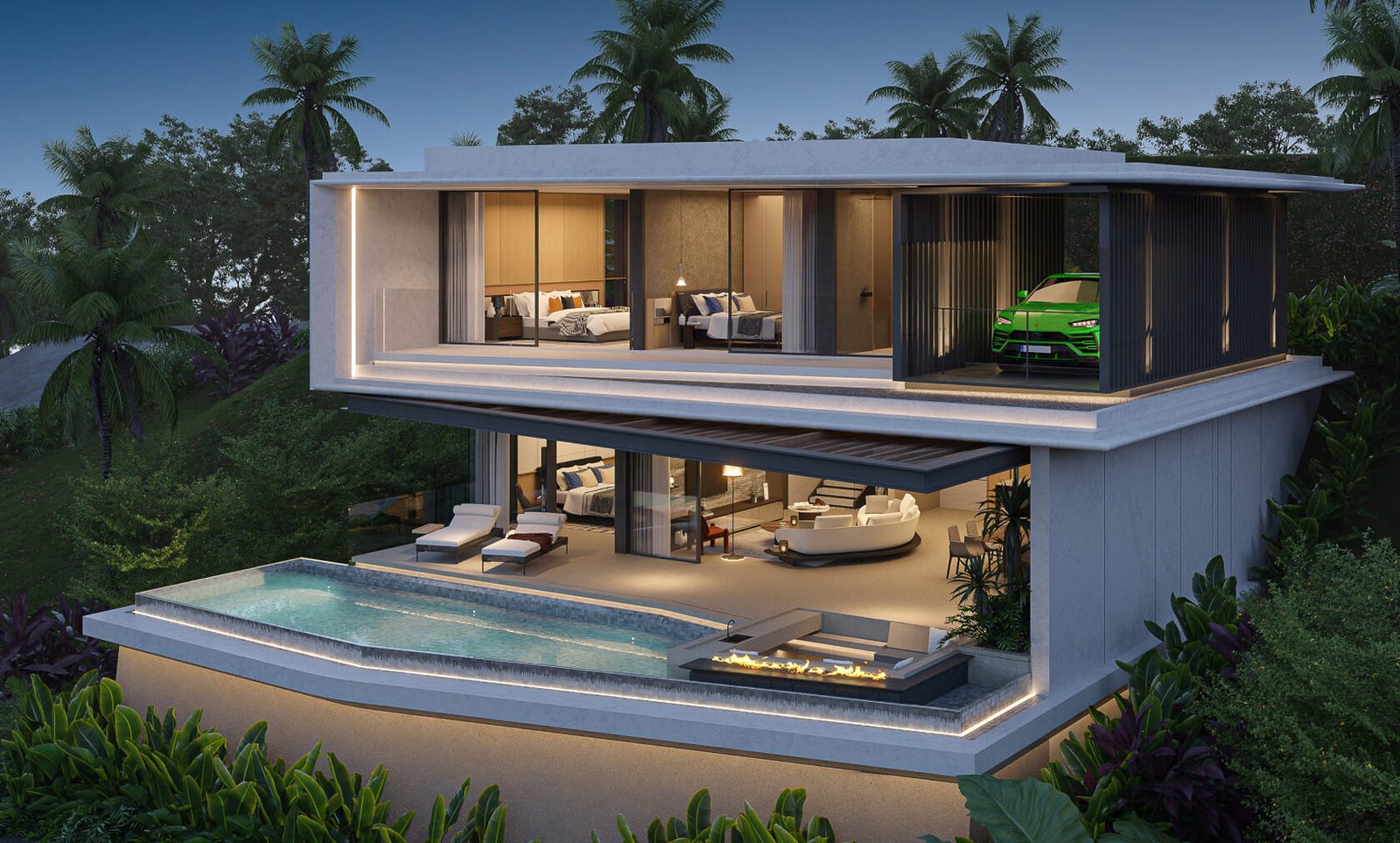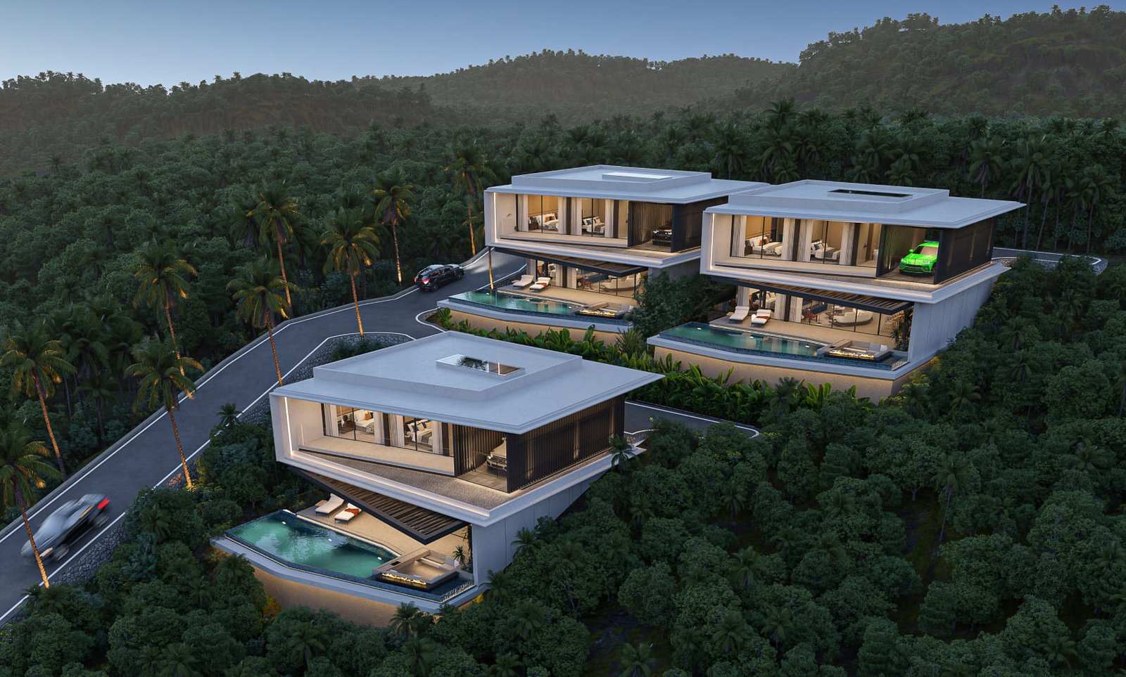 Изпълнени са с висококачествени довършителни материали и впечатляващи интериорни решения, обещаващи изискан и елегантен начин на живот. Всяка вила предлага зашеметяващи панорамни гледки към планината и може да бъде адаптирана според изискванията на купувача. Ексклузивното имение включва само три вили, което го прави силно търсена емблематична собственост в района на Лаян Бийч.