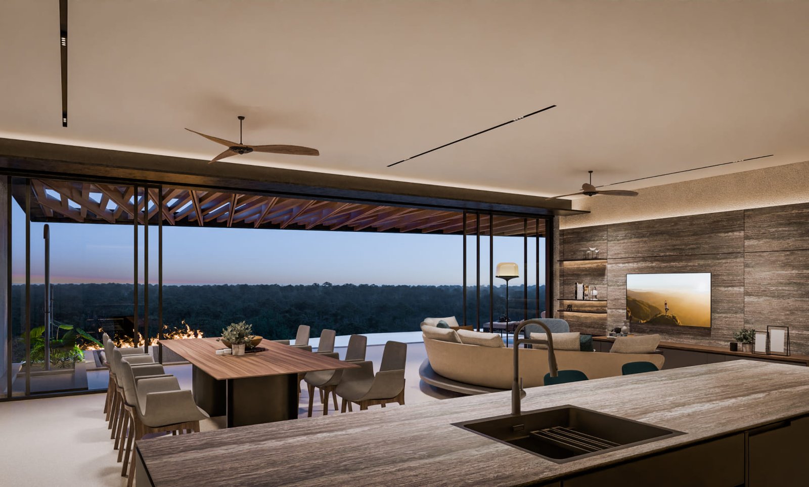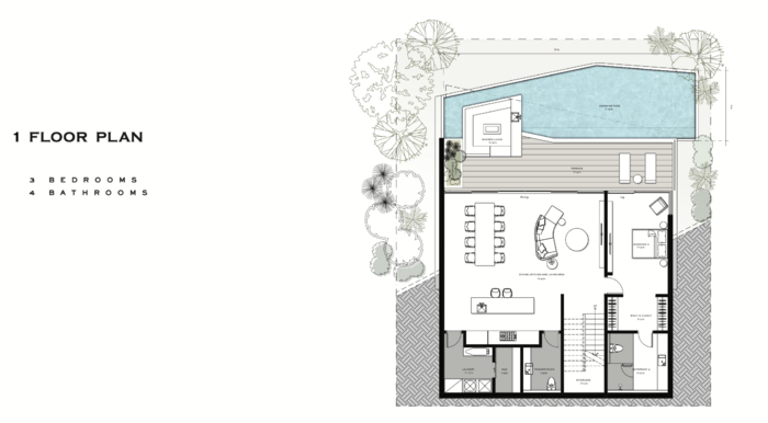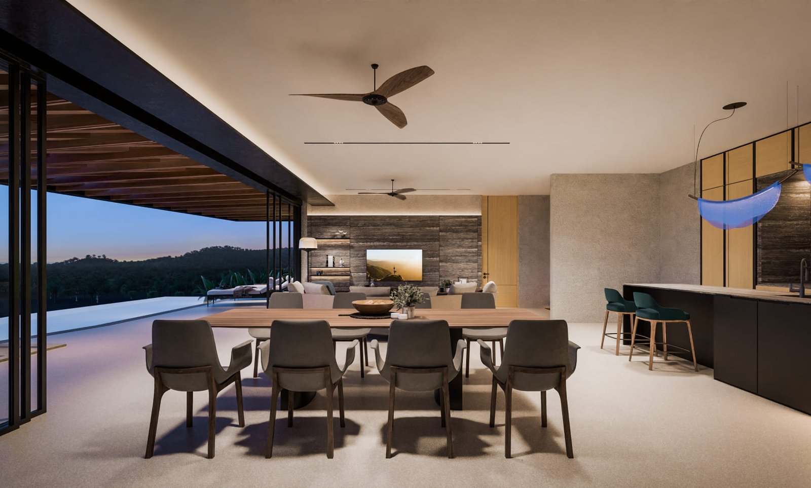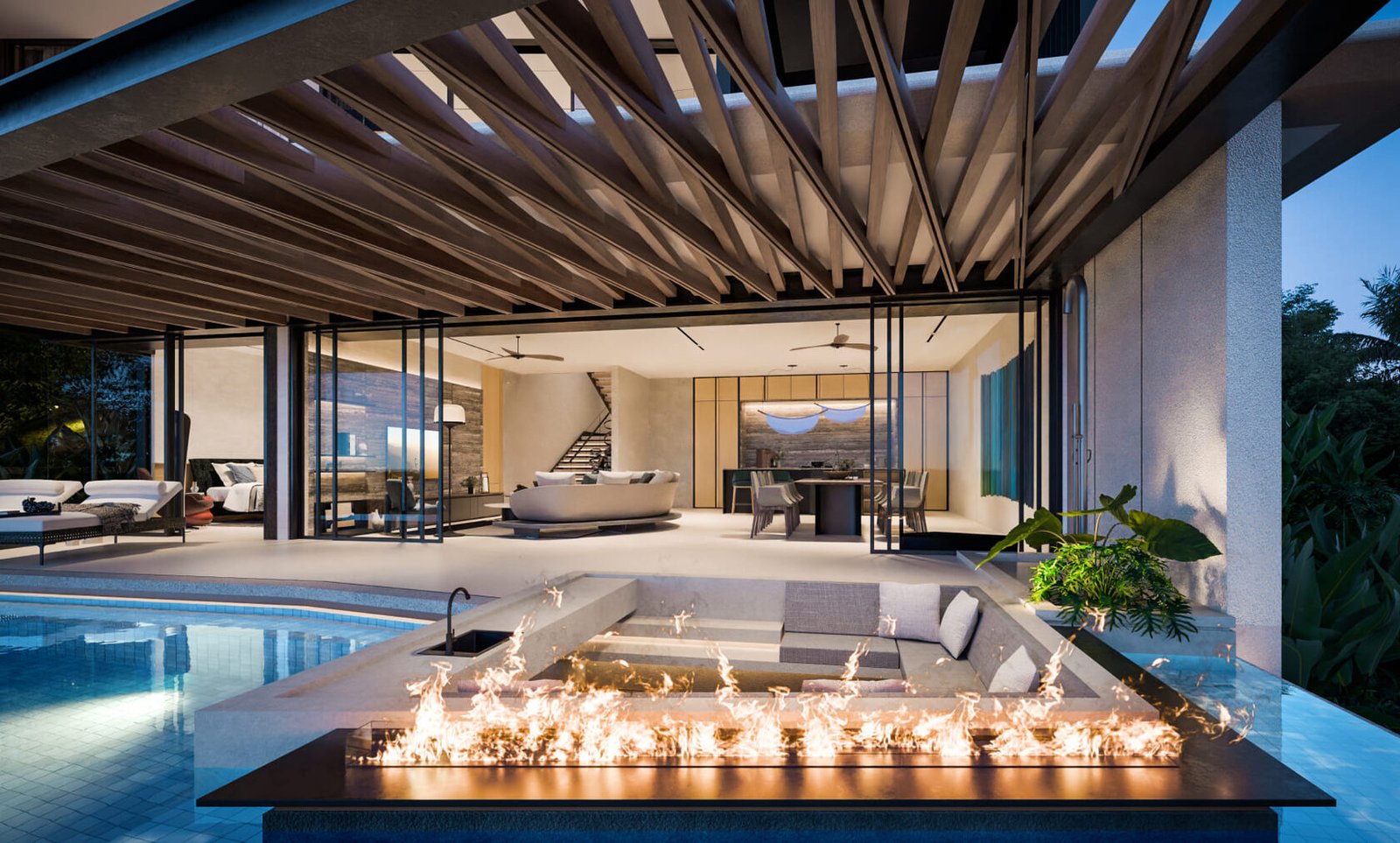 Изпълнени са с висококачествени довършителни материали и впечатляващи интериорни решения, обещаващи изискан и елегантен начин на живот. Всяка вила предлага зашеметяващи панорамни гледки към планината и може да бъде адаптирана според изискванията на купувача. Ексклузивното имение включва само три вили, което го прави силно търсена емблематична собственост в района на Лаян Бийч.
